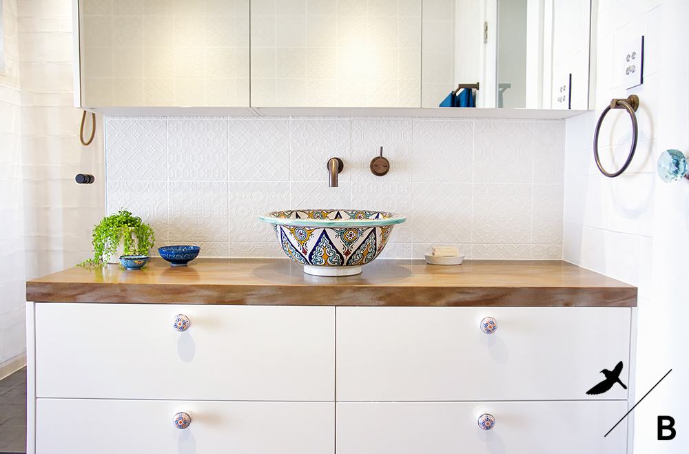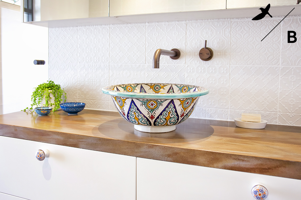 This project was inspired by the owners’ Moroccan hand basin within the space. Our clients have a great love of travelling and Morocco, a certain favourite destination. We love infusing our clients’ personalities into the spaces they will use on a daily basis. We love the reflection and knowing that we create unique,individual and personalised homes.