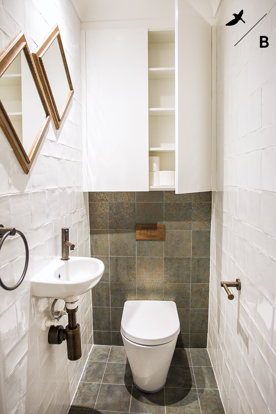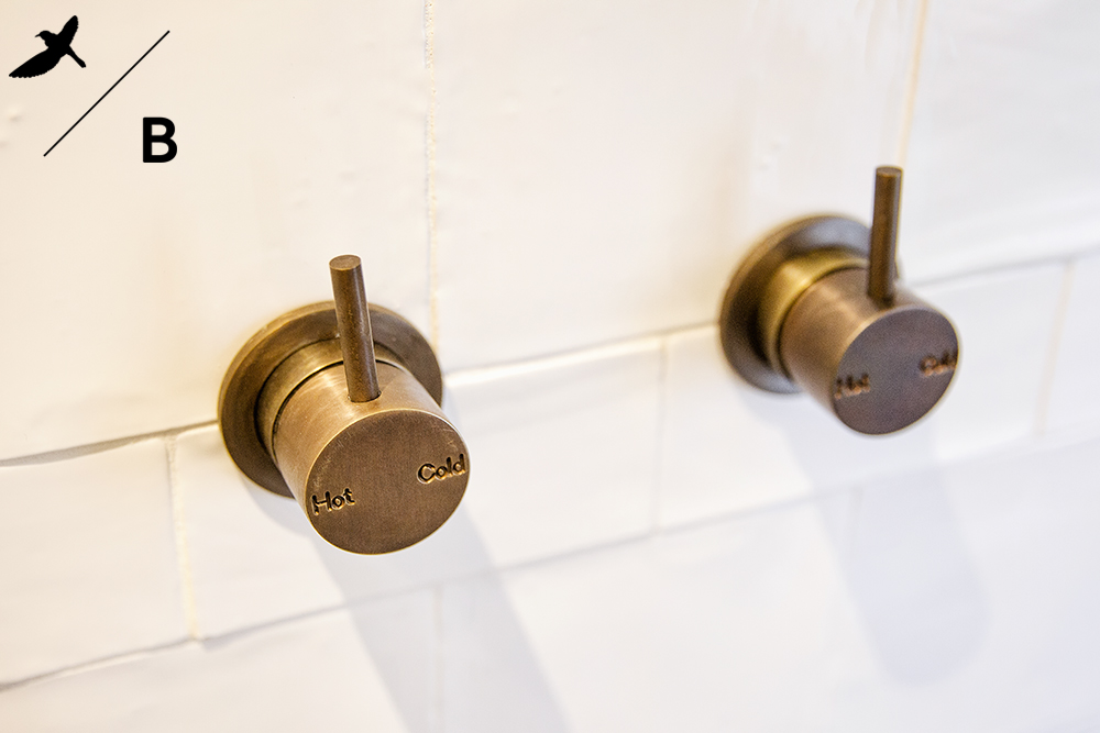 For the toilet room we wanted to replicate the design of the Main Bathroom.This space uses a combination of the living rustic bronze finish for the tapware and accessories utilised in the Main Bathroom.