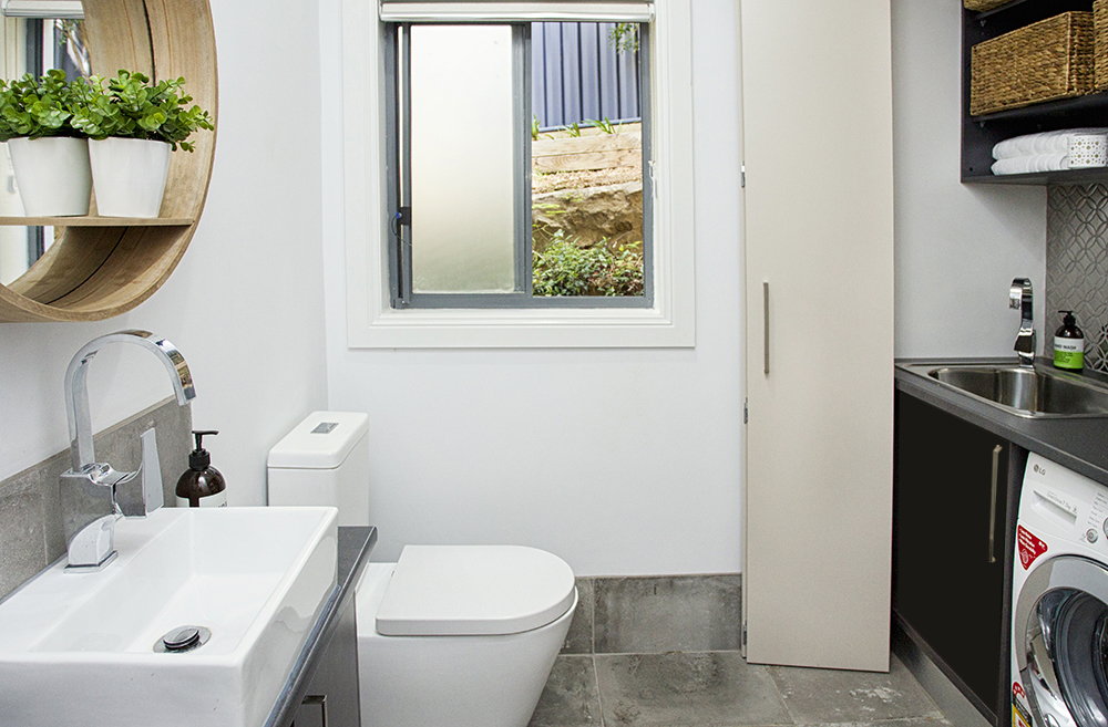The bathroom and adjoining toilet room has been completely renovated. The style was to be modern and fresh, a space in which potential purchasers would feel like they could move in comfortably tomorrow.