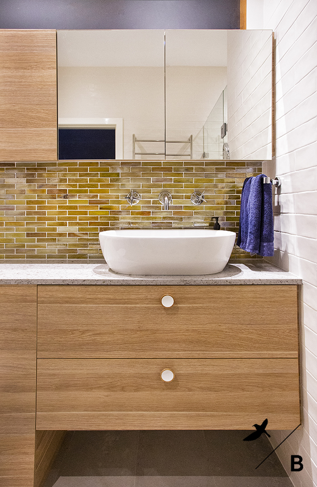 All of the tile selections work perfectly in combination with the blonde tones of the oak timber cabinetry. Keeping with the eccentric/quirky aesthetic. Both rooms pay homage to the style of the surrounding home yet bring it up into modern times with a fresh new look.