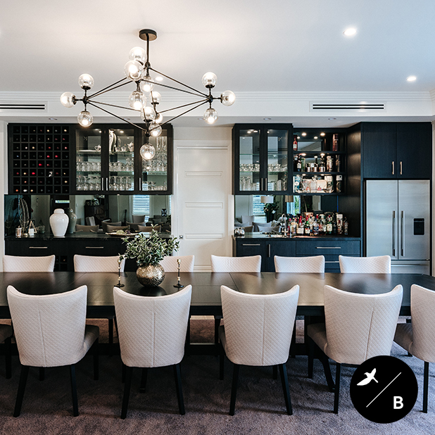 In this day and age, Home Bars are often located in an open plan space,generally in close proximity to a dining table, sitting area or theatre room,so Birdblack Design take into consideration things like food storage, power points and wastage.