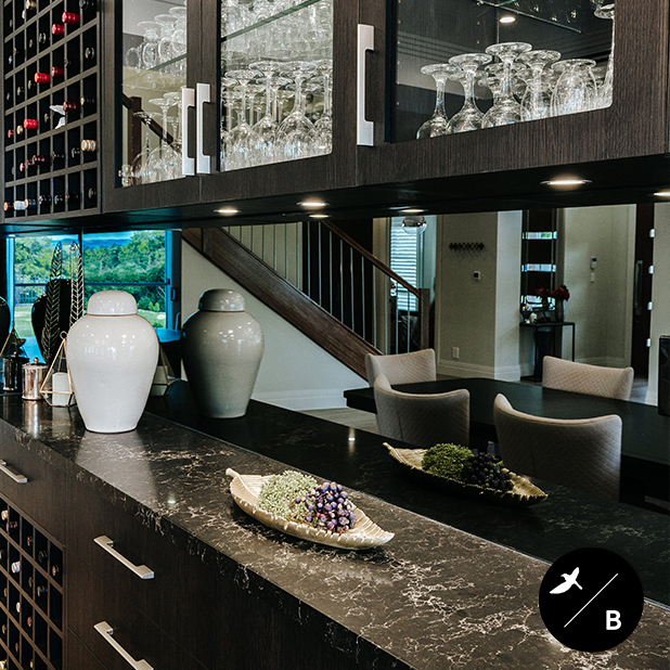 We can design in a full blown Home Bar complete with benchtops and adequate bench space, a sink, fridges and even wastage so that your bar is perfectly self-contained. If a full Home Bar is not suited to your lifestyle, we can install a dry bar (without a sink), a wine display or a cellar to suit all your bottle needs.