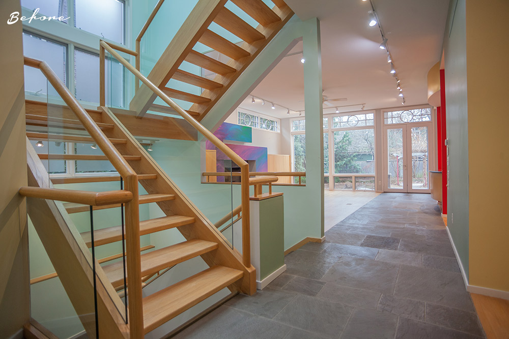 For continuity throughout, the timber treads were also stripped and stained to ebony to create cohesion with the new floors. A custom made steel railing and gates were designed in a fabulous geometric pattern,providing safety for our home owner’s young son.