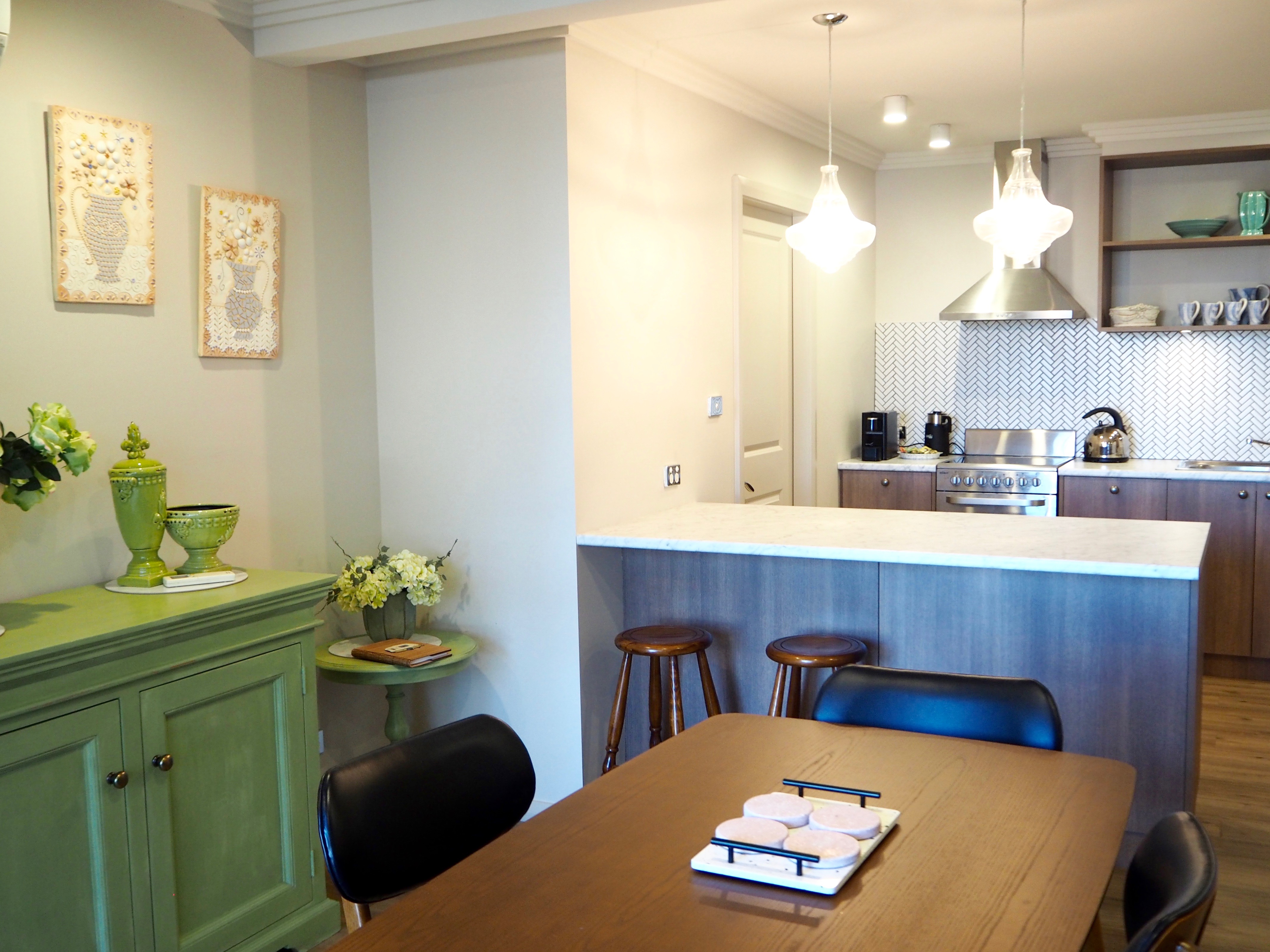 We were able to retain space for two bedrooms along with a living and dining room. We created a functional kitchen and bathroom along with a hidden laundry and linen cupboard. This is now a beautiful space, perfect for the extended family or seasonal vacationers.