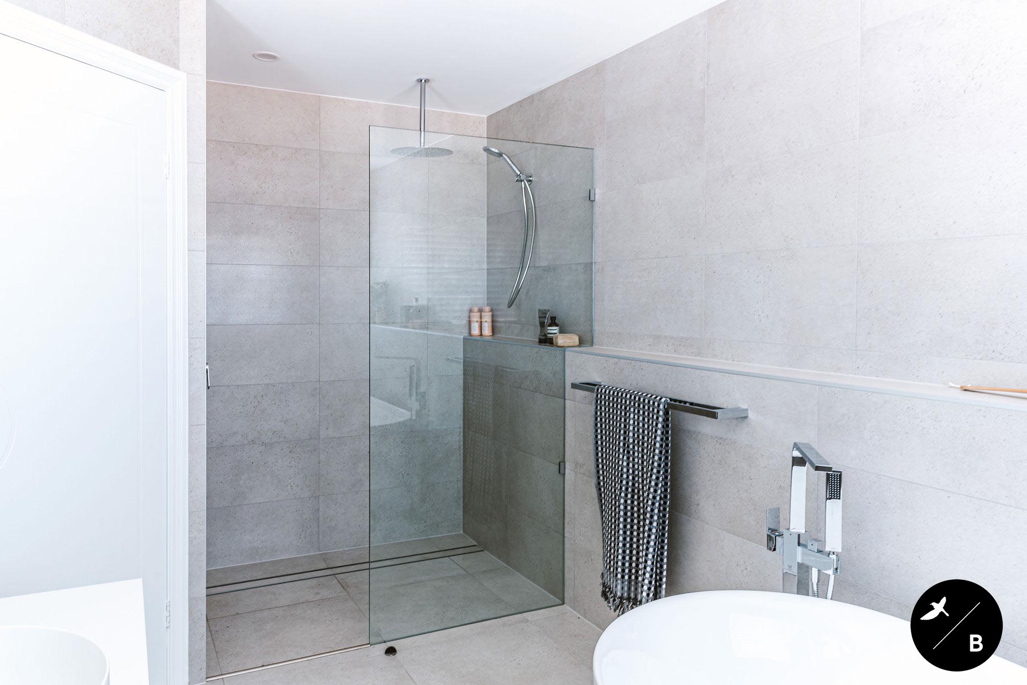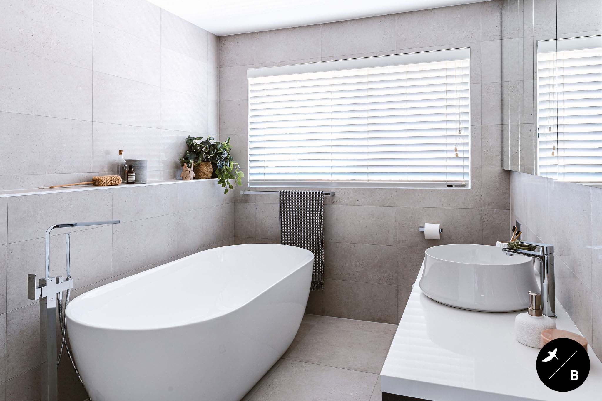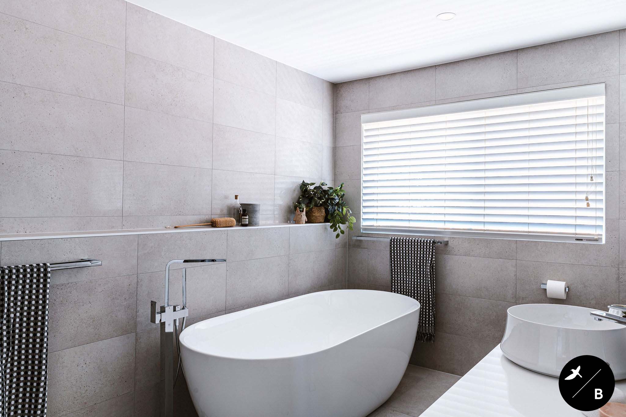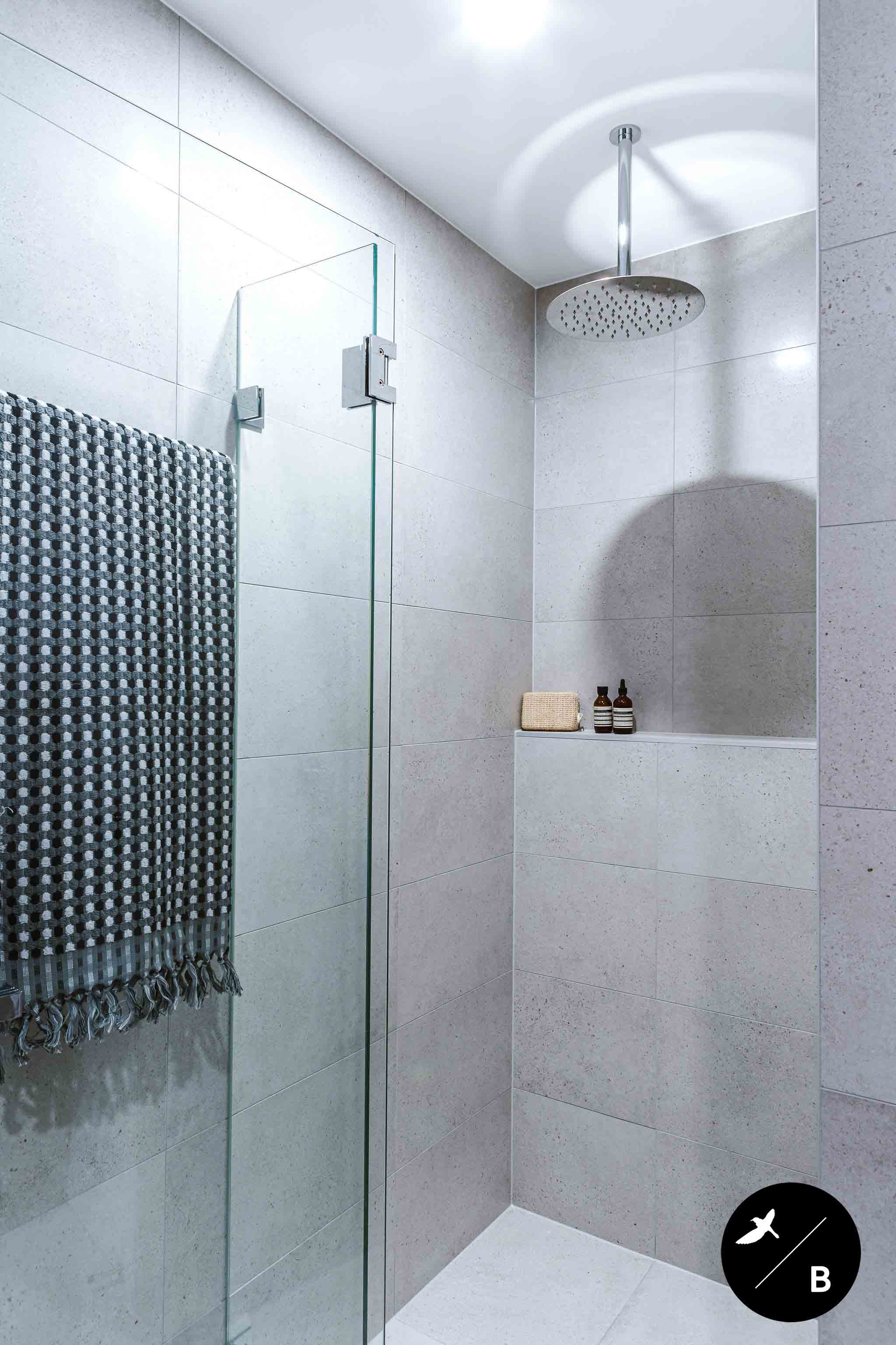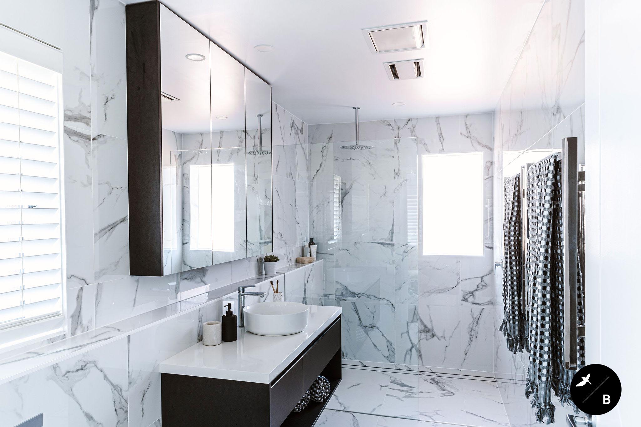 Common elements between all three Bathrooms are the wall to wall ledges, the mirror cabinetry and the polished chrome tapware and accessories. These subtle similarities create cohesion and continuity throughout the home, showcasing harmony throughout all the freshly designed spaces.