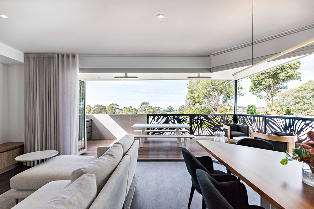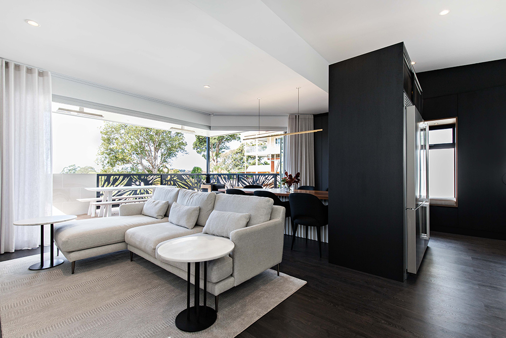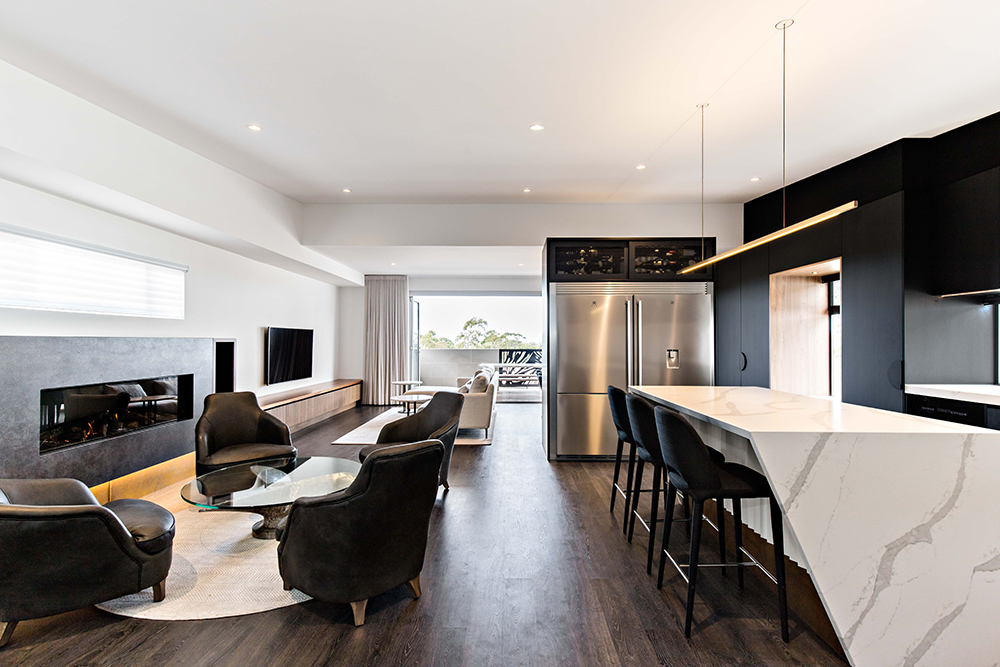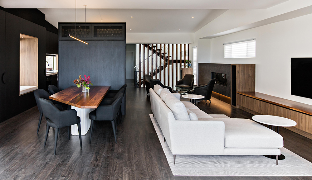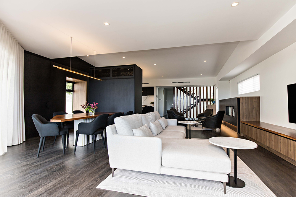 The open plan space layout is the hero of this project. Given the area we were working with was long and narrow; we innovatively created five separate zones,even without the use of walls. The kitchen, dining, lounge, formal sitting and alfresco area are set out, all relating to one another whilst being distinctly different.