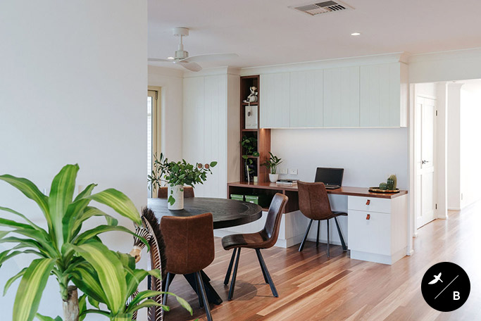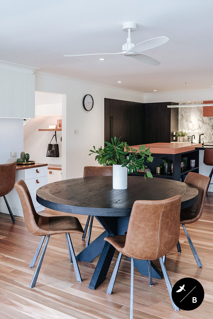 Due to the pre-existing warm auburn tones of the Spotted Gum timber flooring and terracotta roofing tiles, we continued this terracotta colour theme within the new renovation. Paired with gorgeous black and white elements, the sporadic touches of terracotta and brass not only warmed up the interior, but brought continuity and harmony throughout.
